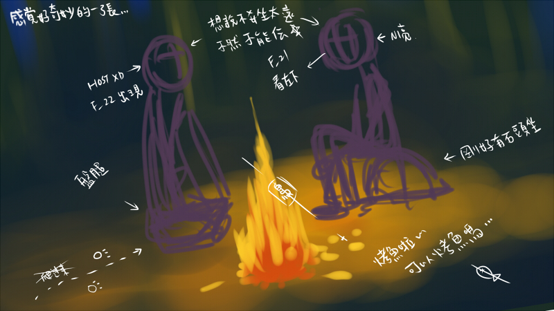 畫面中的希亮正在烤魚。